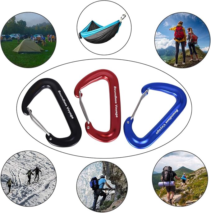 iBasingo 12KN(1200kg) アウトドア カラビナ 多機能登山環 アルミニウム合金登山環 D環 登山釦 軽量 ハンモック用 リュックサック掛け環 工具 3色を選べられる 2本/6本