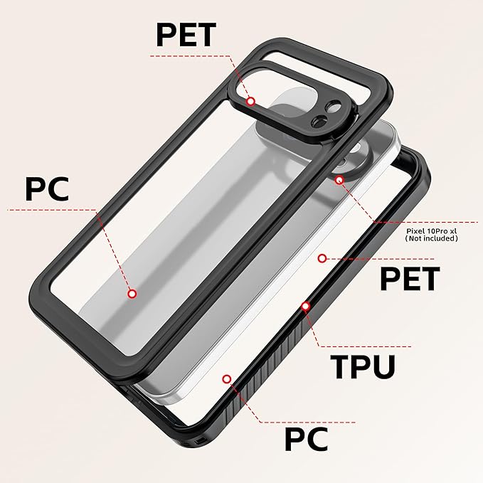 kaitesi Google Pixel 10 Pro XL 用 ケース 完全防水 全面カバー ストラップ付き クリア 透明 ピクセル10 プロ XL 対応 防水ケース 耐衝撃 全面保護 アウトドア
