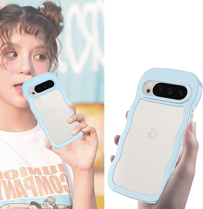 Google Pixel 10/10 Pro/9/9 Pro ケース クリア ウェーブ ピクセル 10/10 Pro/9/9 Pro TPU波状フレーム うねうね グーグル ピクセル10/10 Pro/9/9 Pro 滑り止め スマホケースウェーブ デザイン 手にフィット 韓国 可愛い 女性用 女子向け 透明 ケースカバー 人気 落下防止 耐衝撃 ストラップホール付き グーグルピクセル10/10 Pro/9/9 Pro なみなみ ワイヤレス充電対応(Google Pixel 10/10 Pro/9/9 Pro-ブルー)