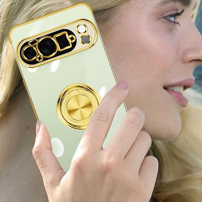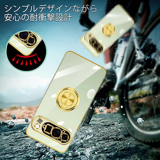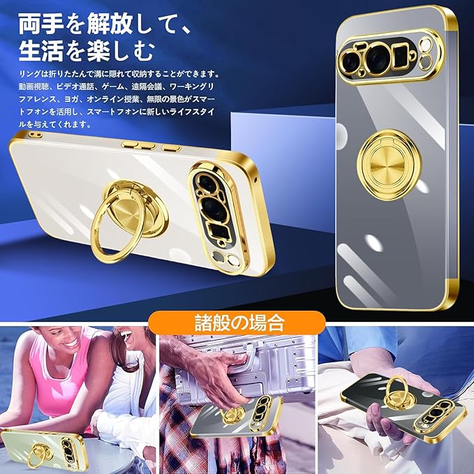 Google Pixel 10 Pro XL ケース リング付き クリア Pixel 10Pro XL ケース 耐衝撃 スタンド機能 ストラップホール付き 軽量 スリム ソフト TPU ピクセル 10pro xl カバー 透明 TPU 擦り傷防止 落下防止 (ゴールド)