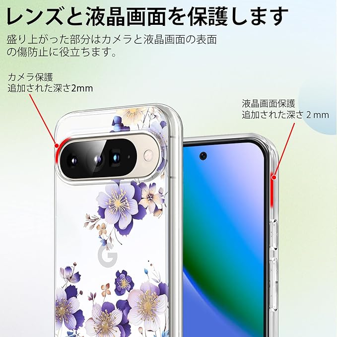 【保護性と美しさを兼備】優れたPCとTPU素材を使用し、ピクセル10/ピクセル10proケース全体の作りはしっかりとでき上がっており、スマホを不意に落としても衝撃と損傷からスマホを保護できます。印刷もIMD技術により色彩が更に鮮やかに見え、透明で薄型のスタイルプラス花の柄はおしゃれで美しいです。