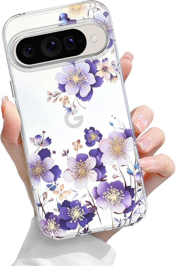 EasEasy Google Pixel 10/Pixel10 Pro ケース 花柄 クリア グーグルピクセル10/10pro ケース IMD技術 耐摩擦 色褪せ防止 pixel10 カバー 押し花 耐衝撃 擦り傷防止 スリム 薄型 おしゃれ ピクセル10プロ用カバー 全面保護 耐久性 TPU PC 軽量 キラキラ(パープル)