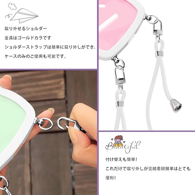 【使いやすさ・長さ調整可能】柔らかいナイロンストラップで首を快適に保ち、金属製のアジャスタブルエンドで、快適な長さに調整できます、手を自由に、ストラップの全長は1.3メートルです。ストラップを取り外して、電話ケースを単独で使用できます。