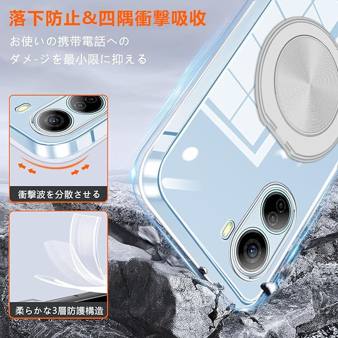 【リング付き スタンド機能】後ろで嵌め込み式リング付き、車載ホルダーに強く吸着することもできます。ケースを横向きにするとスタンド機能になり、360度回転と360度調節可能です。
