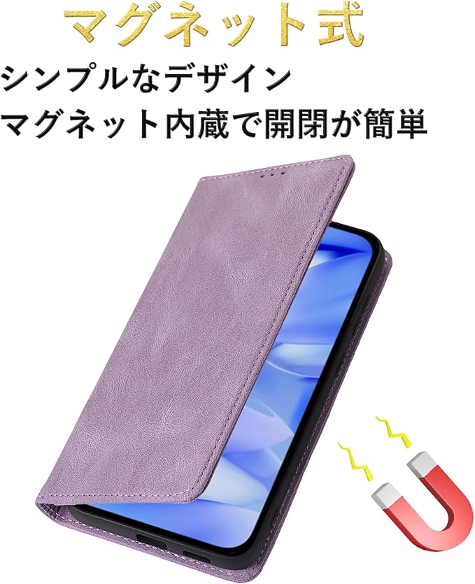 【マグネット式】このケースはマグネットを内蔵しており、面倒なマグネットクラスプを使用せず、開閉がとても簡単です、ミニマルデザイン、ファッションセンスを高めます。