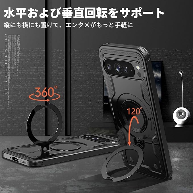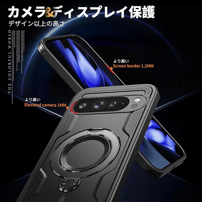 Google Pixel 10 Pro XL 用 ケース 耐衝撃 スタンド付き Magnetic対応 グーグルピクセル10Pro XL カバー リング TPU+PC ワイヤレス充電 米軍MIL規格取得 スタンド機能 (黒 ブラックい)117-PX10PXL-01