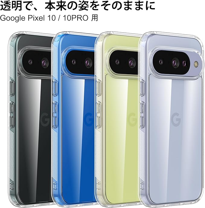 【指紋防止&黄ばみ防止、美しさ長持ち】 特殊な耐傷加工と指紋防止コーティングを施し、指紋や皮脂が付きにくいです。透明なデザインはPixel 10/10 Proの本来の美しさを長く保ちます。