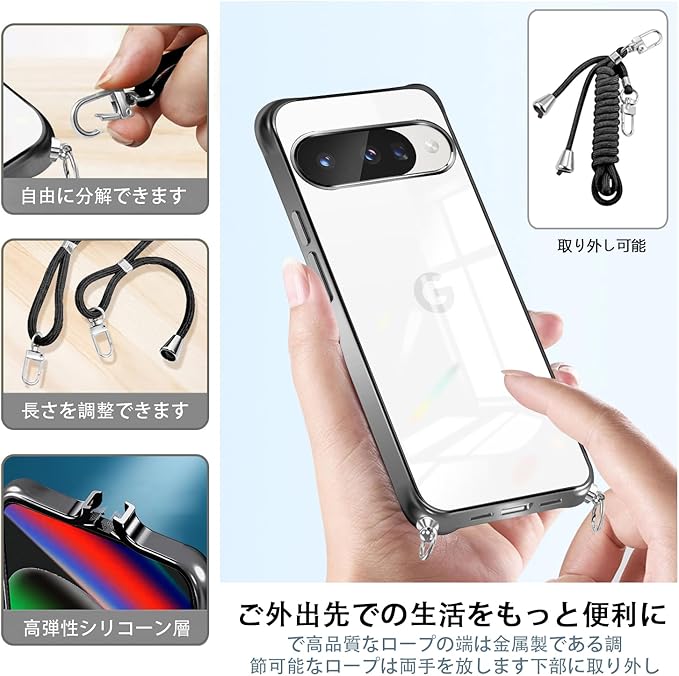 [多用途携带和时尚设计] 対応機種GOOGLE Pixel 10/10 pro 専用デザインです.ご購入前に必ずの機種を確認してください.柔軟で弾力性のある耐久性のあるtpu素材は、柔らかく快適なグリップを可能にします。ネックバンドの電話ケースは高品質のtpuで作られ、透擦り傷防止 柔らかい手触り滑り止め 黄変防止衝突や引っかき傷から電話を保護できます 調節可能なショルダークロスボディネックレス このアクセサリーはファッションだけでなく、通常のストラップよりも快適で実用的です。 ネックストラップは使うシーンに合わせて簡単に取り外すことができます。作業、旅行、出張、ショピング、散歩、コンサート、パーティーに最適です。手を離しても、携帯電話を携帯できます。