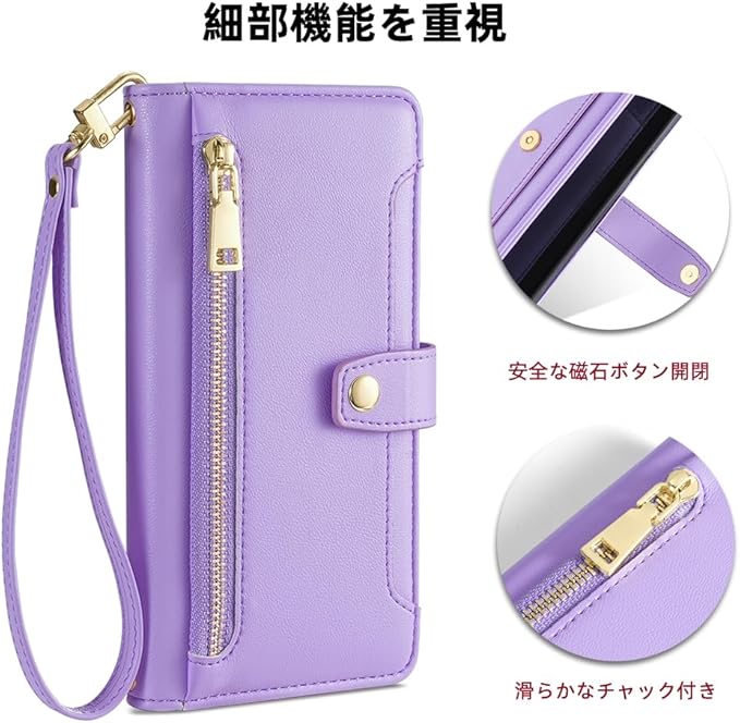 For Google Pixel 10 ケース 手帳型 Google Pixel 10 Pro ケース GooglePixel10/ 10Pro カバー【COKOVI】スマートフォンケース 手帳型 カードホルダー付き ショルダーストラップ 肩掛け 首掛け 耐衝撃 御洒落 女性 可愛い おしゃれ 高級PUレザー スタンド機能 サイドマグネット チャックポケット付き(紫色)