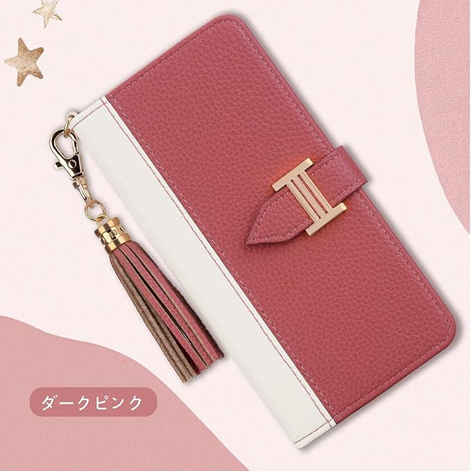【2色のデザイン】このgoogle pixel 9 ケース 手帳型 は、エレガントでミニマルな2色のパッチワーク・デザインと、同色の小さなペンダントが特徴!