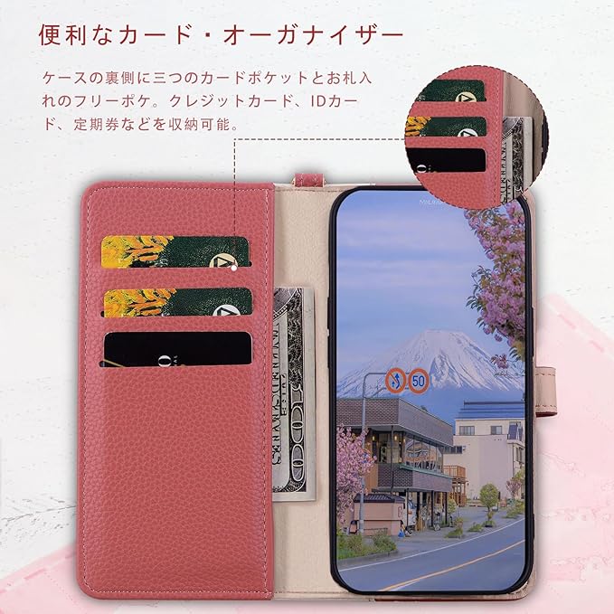【カード収納】このグーグルピクセル10 ケース 手帳型 には3つのカードポケットと、カードやその他のチケットを収納できる横長のマルチポケットが付いている。外出時に財布を持ち歩く必要がなく、とても便利です!