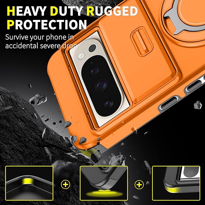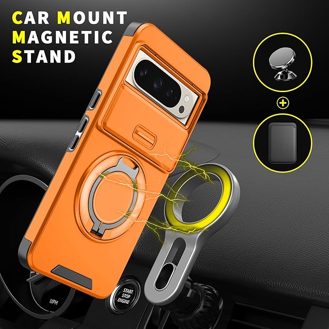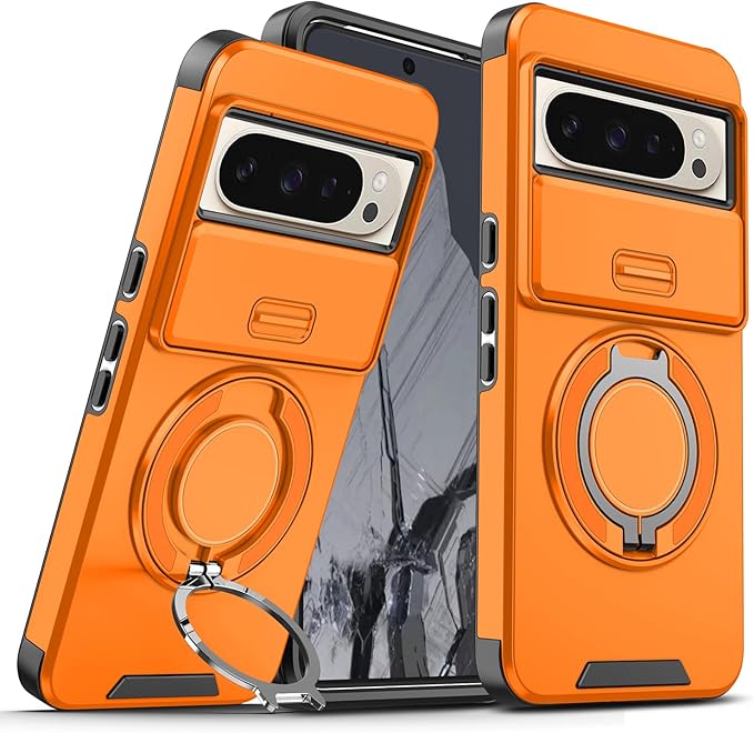 Anlalish携帯ケース 適用する Google Pixel 10 Pro ケース 持っているカメラ保護 耐衝撃 Google Pixel 10 Pro スマホカバー リング人 気 オシャレ車載ホルダー 対応 スライド 保護 カード (オレンジ)