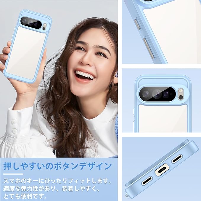 KeeFos ケース Google Pixel 10 Pro XL 5G 対応 TPU+PC素材 保護ケース 耐衝撃 スマホケース 半透明 カバー 全面保護 黄ばみ防止 指紋防止 傷つけ防止 米軍MIL規格 軽量 薄型 保護カバー グーグルピクセル 10 Pro XL 5G 用 (ブルー)