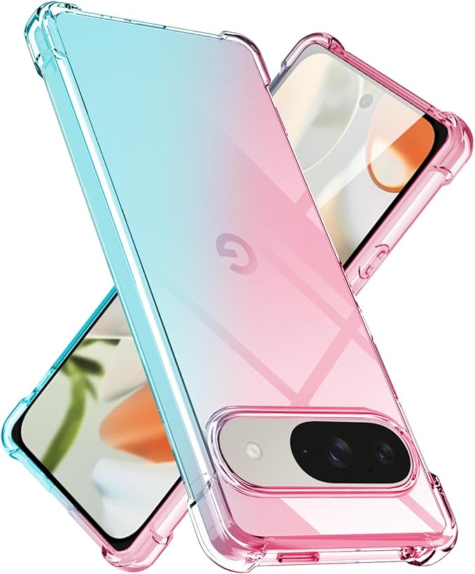 対応 Google Pixel 9 / Pixel 9 Pro 用 ケース クリア TPU 薄型 軽量 耐衝撃 米軍MIL規格取得 滑り止め 黄変防止 防塵 一体型 人気 携帯カバー(ピンクグリーン)