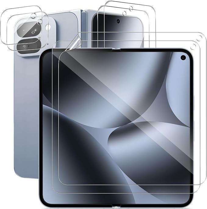 【適用機種】Google Pixel 10 Pro Fold 対応の保護フィルム(2枚)と背面フィルム(2枚)とレンズフィルム(2枚)です。スマホの液晶画面やカメラレンズどちらも保護できます。