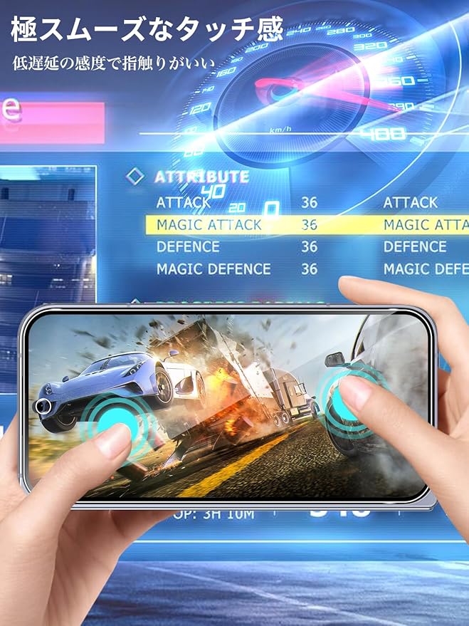 【特殊コーティング加工】保護フィルムは先端コ一ティングにより撥水撥油と指紋防止機能があり、長い時間スマホを使っても液晶画面がスムーズなタッチ感を保てます。手汗・水滴・油汚れなどが付着しにくいですので、爽やかな手触り感ができます。