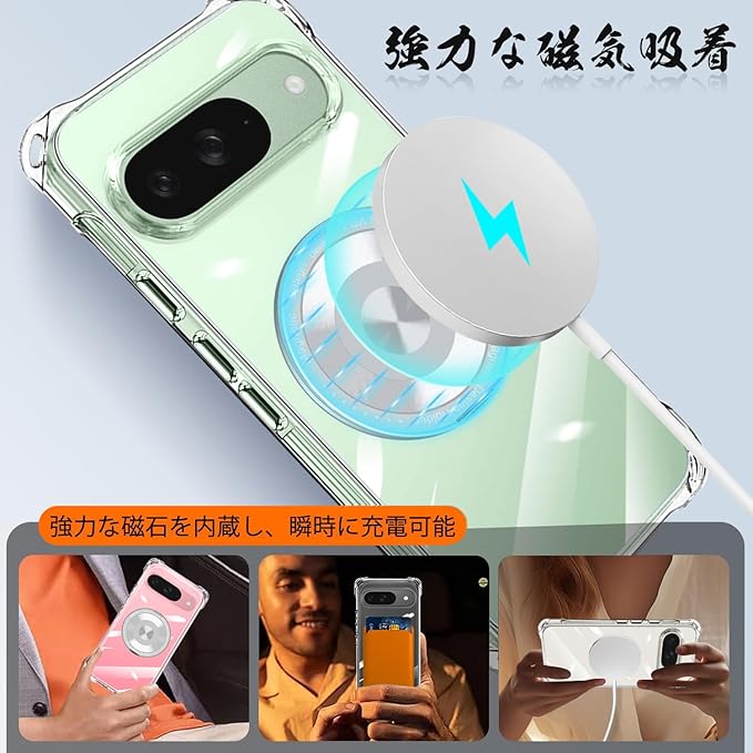 Google pixel 9 ケース pixel 9 pro ケース クリア 透明 MagSafe対応 マグセーフ ワイヤレス充電 リング付き スタンド機能 ストラップ付き 調節可能な ショルダー マグネット搭載 ストラップホール付き グーグルピクセル 9/9 Pro ケース 肩がけ 首掛け 紐付き スマホケース ストラップホール付き 耐衝撃 全面保護 カバー (クリア)