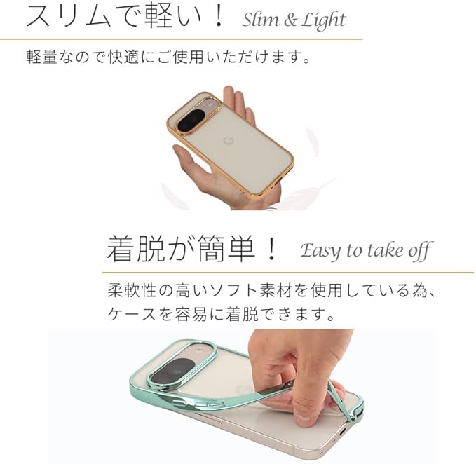 柔らかいTPU素材で作らているので、手に持った際のフィット感が好評です。スマホ本体の着脱も簡単に行うことができます。また、汚れや傷などから本体を守ってくれます。
