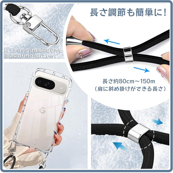 Google Pixel 9 用 ケース ショルダー クリア Google Pixel 9 Pro 用 カバー 斜めかけ 縄掛け 肩掛け 首掛け ストラップ付き 耐衝撃 薄型 軽量 TPU バンパー 韓国 可愛い グーグル ピクセル9 ケース