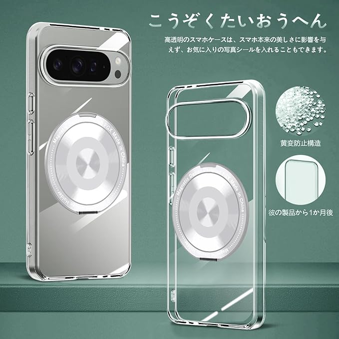 Google Pixel 9 Pro ケース クリア 360 回転スタンド MagSafe対応 ワイアレス充電対応 耐衝撃 ピクセル 9pro カバー 軽量 薄型 人気 Pixel9Pro スマホケース 透明 TPU + PC 車載ホルダー対応 (クリア)