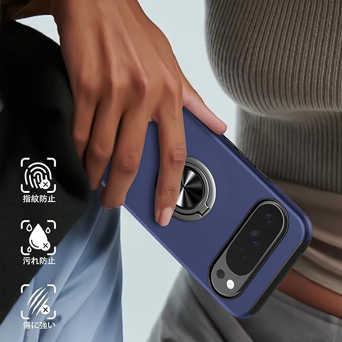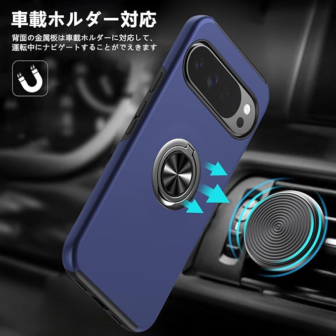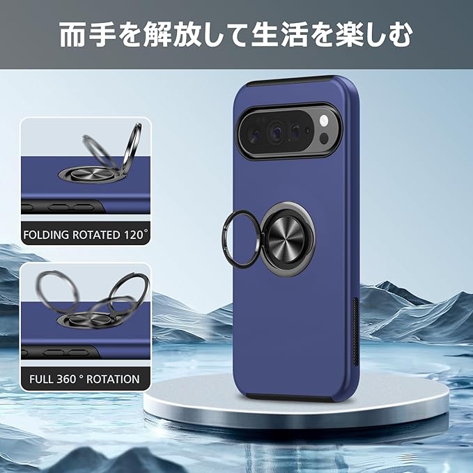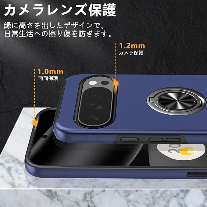 Tgaoleyd 対応 Google Pixel 10 Pro XL 用のケース リング付き 耐衝撃 tpu フルプロテクトデザイン スマホカバー スタンド機能 グーグル ピクセル10 pro xl 用のケース 全面保護 擦り傷防止 落下防止 米軍MIL規格 車載ホルダー対応 取り出し易い オシャレ 人気 携帯カバー 青 D-A09-52