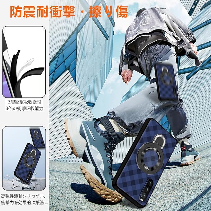 Google Pixel 9 Pro XL ケース MagSafe対応 丸型 スタンド付き マグネット搭載 縦横両対応 グーグルピクセル チェック柄デザイン TPUバンパー 耐衝撃 全面保護 Pixel 9 Pro XL スマホケース