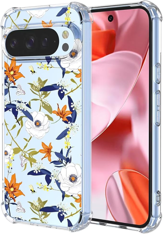 MUTOUREN Google Pixel 9 / Pixel 9 Pro ケース グーグルピクセル9 / グーグルピクセル9 Pro 透明 TPU バンパー おしゃれ 可愛い 花柄 薄型 軽量 耐衝撃 ワイヤレス充電対応 スマホケース A46