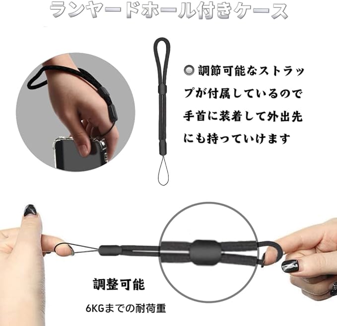 (5)ケースにはヒモ用の穴があるので、調節可能なヒモを付属しています、手首に掛けることができます、持ち運びが簡単で、外出時に紛失する心配はありません。