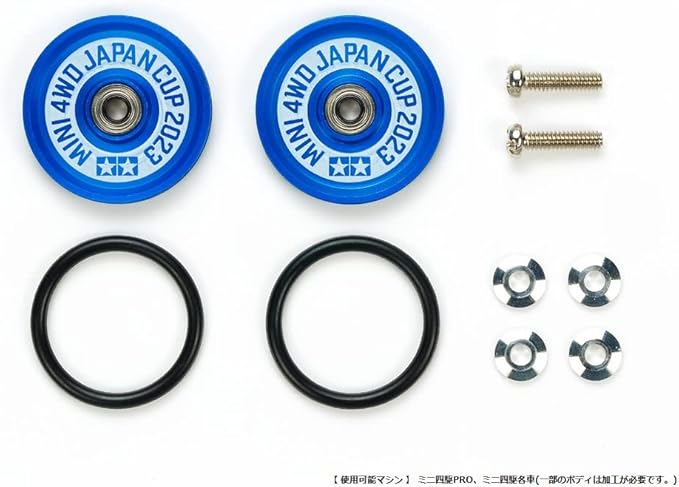 軽く強度の高いディッシュタイプの19mmアルミローラーにブルーアルマイトを施し「JAPAN CUP 2023」「MINI 4WD」の文字をホワイトプリントしたプレミアム感あふれる限定ローラー。