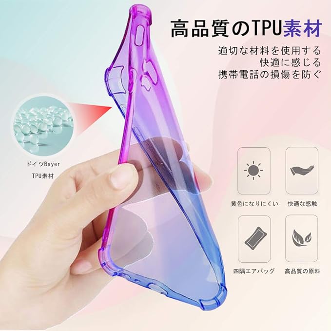 【衝撃吸収+衝撃保護】高品質なTPU、ケース四隅、内側の加工で衝撃に強く、耐久性に優れた、傷がつきにくいポリカーボネート素材を採用しておりますから、落とすことはもはや、心配しなくとも大丈夫です
