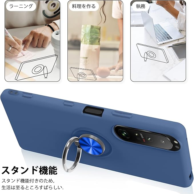 【リング付き・スタンド機能】後ろで嵌め込み式リング付き、伝統的なリングと比較して、アイフォーンの水平安定性を維持することができます。ケースを横向きにするとスタンド機能になり、360度回転と120度調節可能です。マグネット対応金属板採用し、車載ホルダーに強く吸着することもできます。