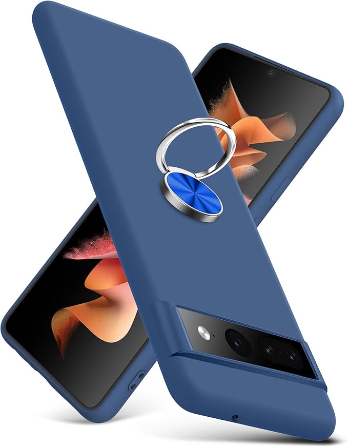 WACJOSD ケース 対応 Google Pixel7 Pro 用の ケース リング 耐衝撃 シリコン Pixel7 Pro カバー TPU 薄型 リング付き かわいい ストラップホール付き 指紋防止 レンズ保護 磨り表面 擦り傷防止 滑り止め 軽量 黄変防止 脱着簡単 青C91-pixel 7p-03
