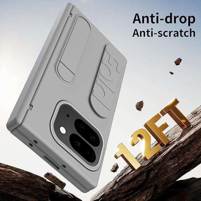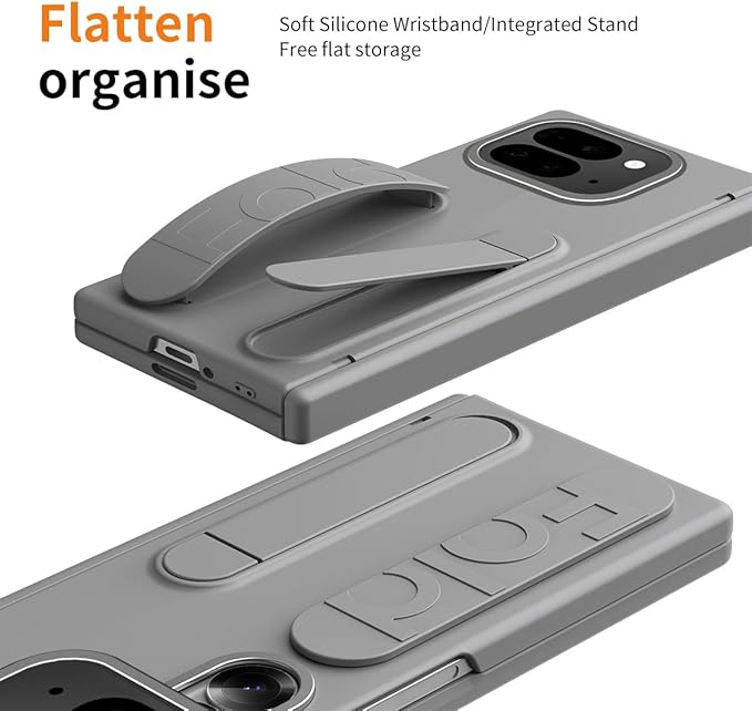GG Pxl 9 Pro Foldのケース 手帳型 強化ガラス保護フィルム マットの表面 指紋防止 ヒンジ保護カバー 薄型 軽量 全面保護 肌にやさしい感触 レンズ保護 ワイヤレス充電 リストバンド スタンド機能 人気 折り畳み 耐衝撃 滑り防止 携帯電話 フレーム 落下防止 かわいい 財布型 スマホ Beautycatcher - チタン灰