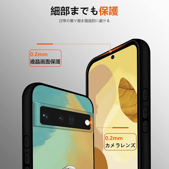 【スタイリッシュな外観】Google Pixel 6 Pro ケースの背面にはカラー絵画のデザインを採用しています。Google Pixel 6 Pro 本体とピッタリ密着して違和感がない一体感がすごく格好いいです. 【使用面へのこだわり】落下時の衝撃を出来る限り緩衝出来るよう、四隅で衝撃を吸収する「エアクッションテクノロジー」を採用。 【精確なカット加工】精確に加工しているので、Google Pixel 6 Pro の充電ポートやスピーカーに影響しません。 【超薄型&超軽量】Google Pixel 6 Pro 用に設計されており、保護性と軽量性の両立を実現し、まるで付けていない感じです。手の汗を防ぎ、滑り止め、Google Pixel 6 Pro 本来の快適な手触りを復元します。 【全面の保護】Google Pixel 6 Pro の各ボタン部分への操作性、アクセスしやすさを考慮した最適な設計になっております。前面も背面もフチを高く設計し液晶画面とカメラレンズをキズから保護します。ケースの各コーナー内側部分に落下時の衝撃を効率よく吸収するための技術を採用。