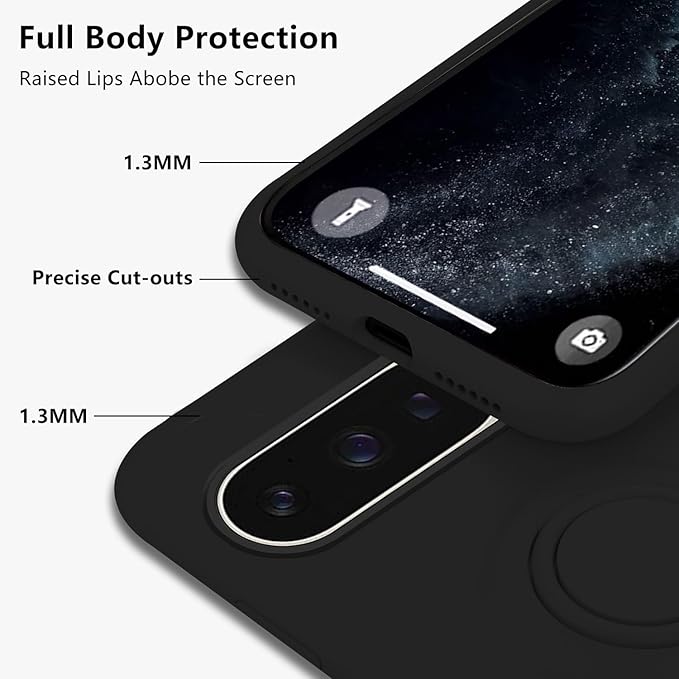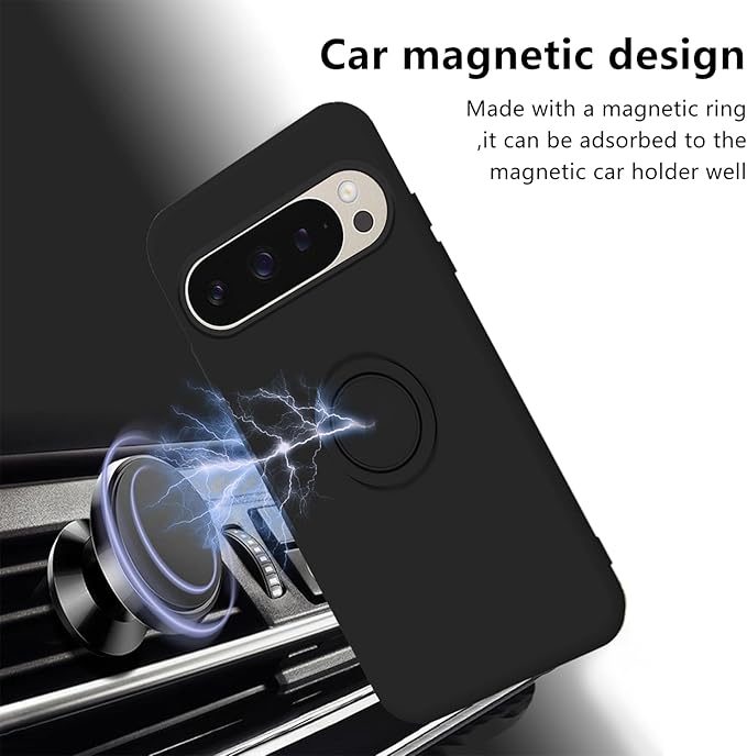 Wousunly ケースと互換性がありますPixel 9 Pro XL用ケース 液体シリコン 耐衝撃 Google Pixel 9 Pro XLカバーリング360 回転車載 薄型 軽量 指紋防止スマホカバー Pixel 9 Pro XL柔軟 人気 指紋防止 (黒)