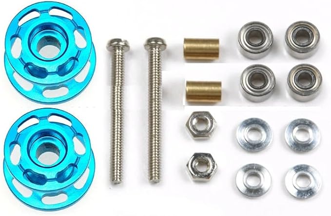 RIZES ミニ四駆 用 2段 アルミローラー 軽量 高精度 13mm 安定走行 カスタム 改造 パーツ グレード ドレス アップ 金具付 ベアリング 部品 2個 セット ブルー