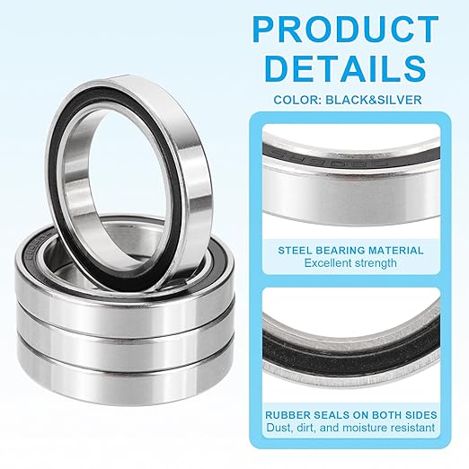 ダブルラバーシール:ベアリングには両側に黒いラバーシールが付いており、優れた防塵、汚れ防止、防湿性を提供し、スムーズな動作を確保し寿命を延ばします。