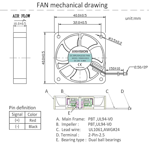 ANVISION 2パックDC 24V 40mm x 10mmブラシレス冷却ファン、デュアルボールベアリング