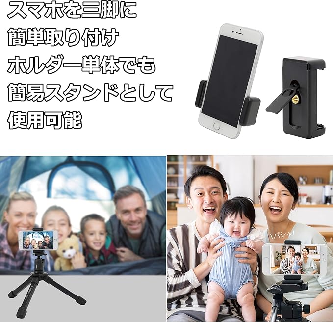 三脚などにスマートフォンや携帯電話を簡単に取り付けできるアダプター。