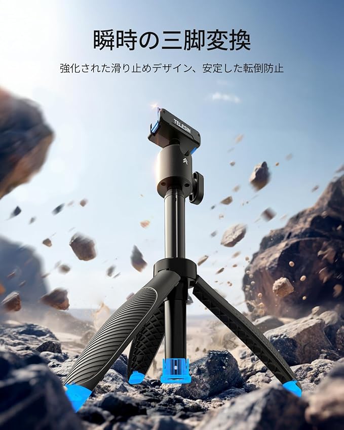 【多様な撮影モード】 ハンドル、セルフィー棒、三脚の機能を兼ね備えています。ハンドルモードはスポーツ追跡撮影に最適、セルフィー棒モードは広角撮影を容易に、三脚モードはデバイスを安定して支え、タイムラプス撮影や固定カメラ位置撮影などに役立ちます。1つの製品で複数の機能を実現し、アクセサリーの持ち運び負担を軽減。家族集まり、アウトドア撮影、日常の記録など、多様な創作ニーズに対応し、より多くの撮影アイデアを解放します。