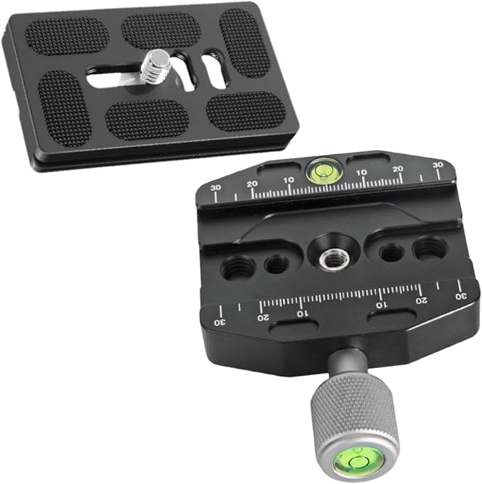 [NR-Style] クイックシュー リリース クランプ プレート アルカスイス 互換 三脚 一脚 アダプター 水平器 70mm 1/4 3/8 ネジ カメラ ビデオ (セット(クイッククランプ+クイックプレート))