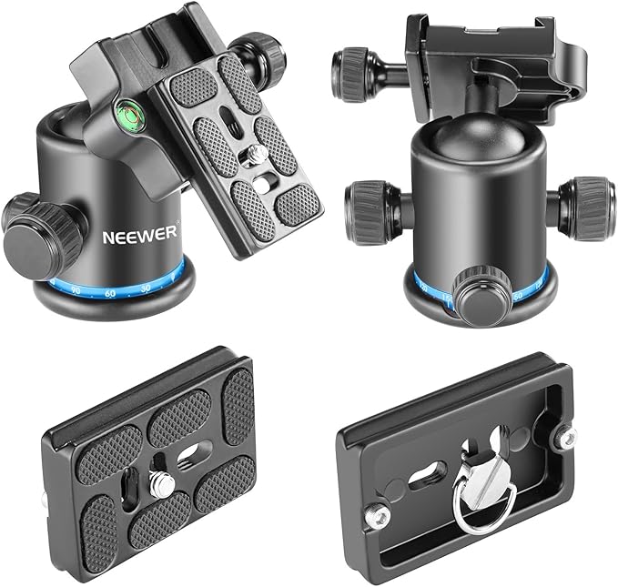 Neewer プロメタル三脚ボールヘッド 360度回転可 1/4インチクイックシュープレート、バブルレベル付き 三脚/一脚/スライダー/DSLRカメラビデオカメラに対応 耐荷重8kg(黒+青)