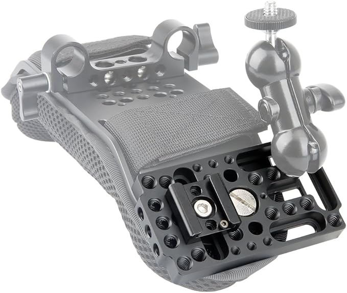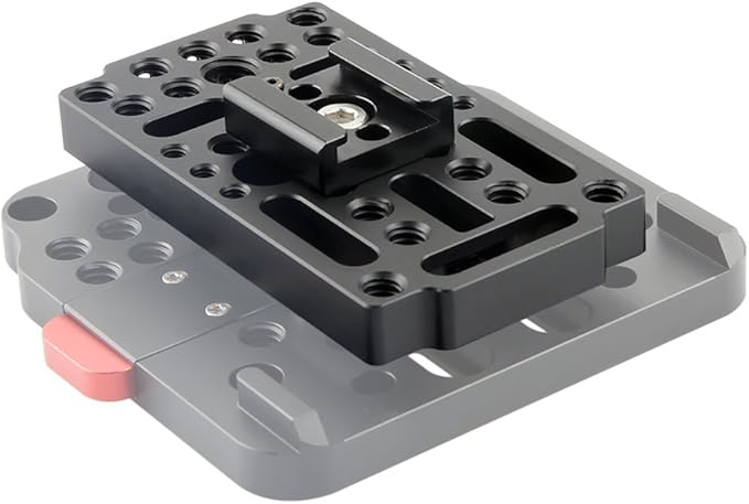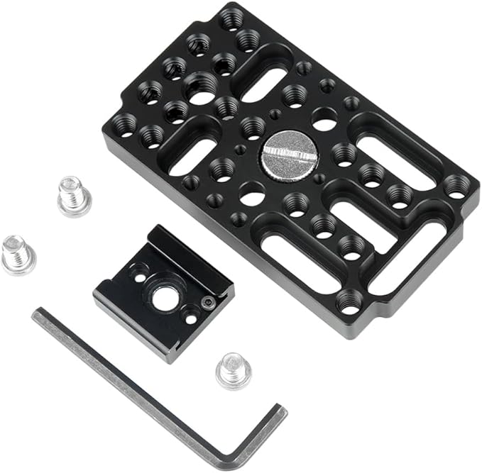 【広い範囲を使用ができる】連続プレートは1/4インチのネジ穴、3/8インチのネジ穴、M3ネジ穴 、M4ネジ穴、1/4インチのシンクホールが付いて、複数ネジ穴の設計なので、ロッド、 アーム、バッテリ、コンバータボックス等様々なカメラアクセサリーを装着可能です。(ネジ穴間隔は9mmので、もっとシンプルと直観に利用ことができます。)汎用性だけで無く安定性、機能性にも優れています。用途に合わせ調整できます。プロやアマチュアを問わず、カメラマン/映画製作者のための適当な機材です。