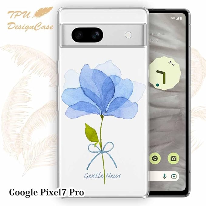 AnglersLife ソフトケース TPUケース Google Pixel 7 Pro クリアケース グーグルピクセル7プロ ケース 花柄 青い花 嬉しいニュース