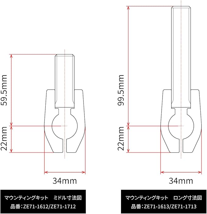 アーマーハンドガードをハンドルに固定するための取付けマウント。ミッドサイズより40mm延長したタイプ。ブレーキバンジョーボルト等の干渉回避に有効。
