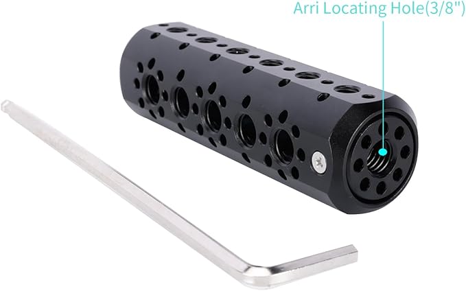 チーズハンドル:ハンドル本体全体に3/8"-16 ARRIネジ穴と1/4"-20の位置決め穴が施されており、ビデオリグをDIYするための便利で多用途なハンドグリップです。