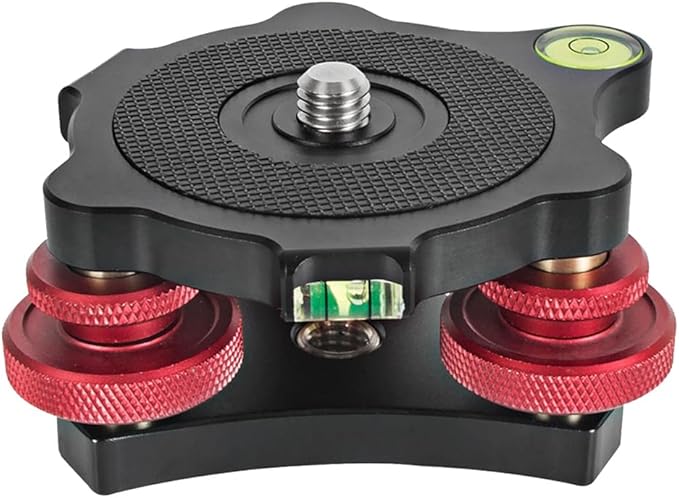 3 つの微調整ノブにより、水平方向に最大 +/- 5 度の調整が可能で、滑り止めの耐摩耗性ゴム製パッドとロック リング設計のダイヤルにより、カメラが完全に水平になり、安定した撮影が可能になります。