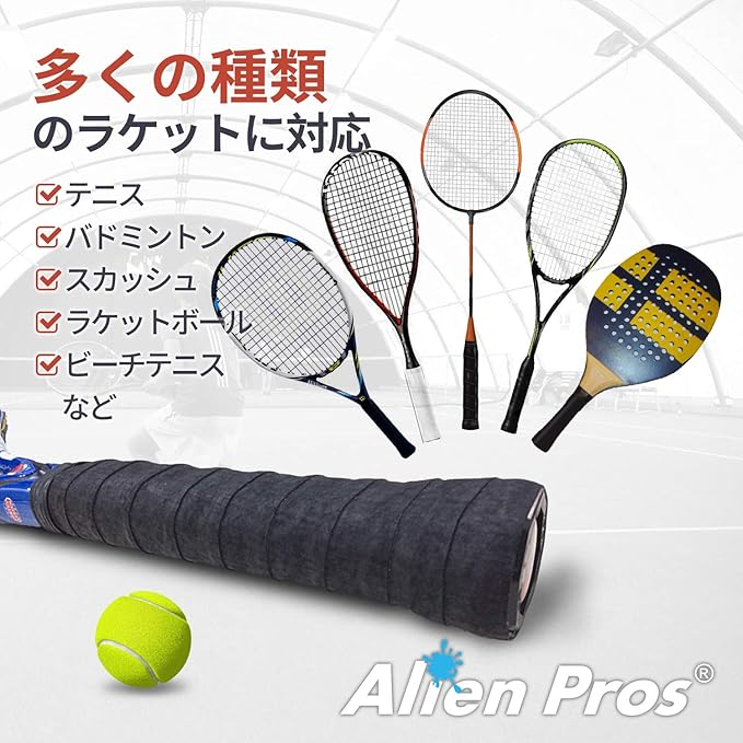 テニスプレイヤーによるテニスプレイヤーのための、吸水性抜群のドライタイプ。Alien Pros テニスグリップは、汗をしっかりと吸収し、滑らないようドライな感触を提供します。
