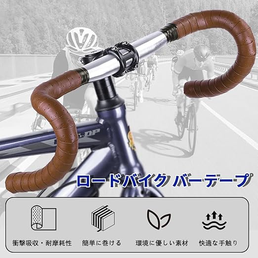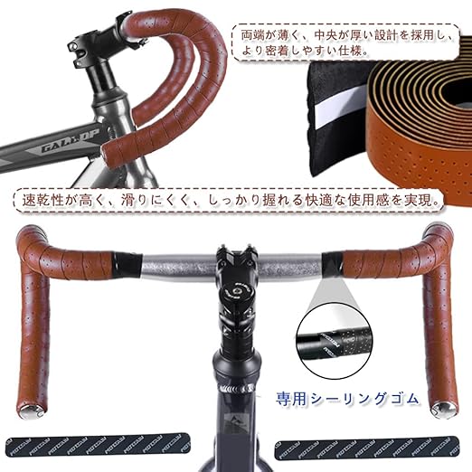 バーテープ ロードバイク用 ザー調 PU+EVA製 自転車用グリップ バーテープ 穴あき 滑り止め 左右セット ブラウン