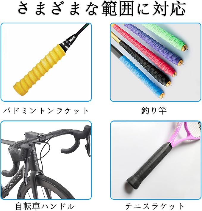 【多用途】テニス、バドミントン、スカッシュ、卓球、野球、ソフトボールに適しています。自動車の電動ハンドルバー、自転車のハンドルバー、釣り竿、バイクのハンドルバーなどにも適用されます。